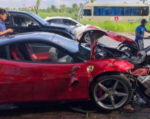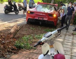 Tại hiện trường, xe ô tô màu đỏ hiệu Ferrari biến dạng phần đầu, cây xanh bị đổ gẫy nằm trên vỉa hè. Nhiều nhân chứng cho biết, trước khi xảy ra va chạm, chiếc xe lao với tốc độ nhanh rồi bất ngờ lao lên vỉa hè.